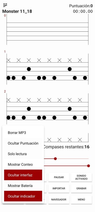 Durante la reproducción, la interfaz de usuario se oculta para mostrar la partitura en pantalla completa.