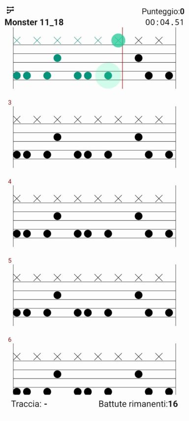 L'app è in grado di leggere e interpretare i segnali MIDI provenienti dalla batteria elettronica (E-Drum). Suona i tamburi al momento giusto e la nota diventerà verde!