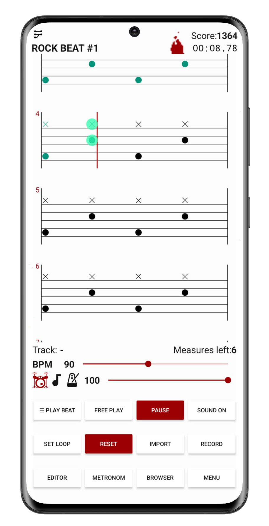 Google Play: https://play.google.com/store/apps/details?id=com.parappnoid.drumrebeltutor